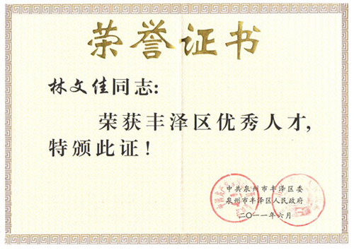 近日,為進(jìn)一步營(yíng)造“尊重勞動(dòng)、尊重知識(shí)、尊重人才、尊重創(chuàng)造”的良好氛圍,推進(jìn)“人才強(qiáng)區(qū)”的戰(zhàn)略,豐澤區(qū)委、區(qū)政府舉辦“關(guān)于評(píng)選表彰2011年豐澤區(qū)優(yōu)秀人才”的活動(dòng),向外公布表彰35位業(yè)務(wù)精湛、貢獻(xiàn)突出的優(yōu)秀人才,福建省訊網(wǎng)網(wǎng)絡(luò)科技有限公司總經(jīng)理林文佳先生榜上有名,被授予專(zhuān)業(yè)技術(shù)類(lèi)優(yōu)秀人才榮譽(yù)稱(chēng)號(hào)。