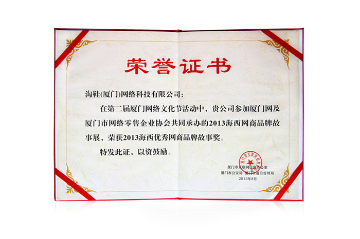 由廈門網攜手廈門市網絡零售企業協會聯合主辦的“2013海西網商品牌故事展播”于近期落下了完整帷幕。通過為期一個多月公開公正的網絡平臺投票,淘鞋網最終以高票數成功榮獲了“2013海西優秀網商品牌故事獎”。