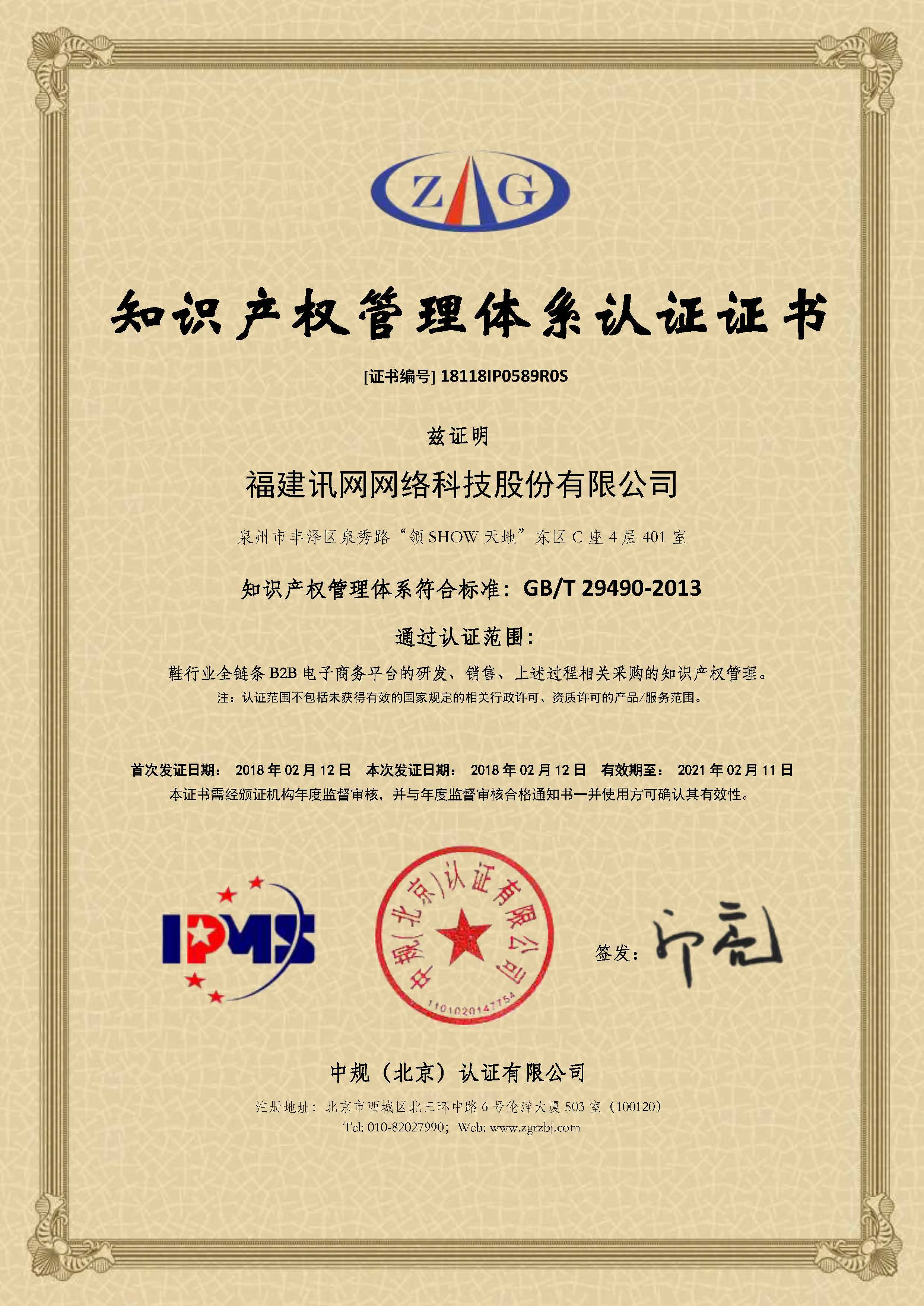近日,福建訊網(wǎng)網(wǎng)絡科技股份有限公司(簡稱:訊網(wǎng)網(wǎng)絡,股票代碼:839825)憑借其在技術研發(fā)、產品創(chuàng)新、技術應用和知識產權建設等方面的優(yōu)異成果順利通過“知識產權管理體系認證”,這是繼今年1月復審通過國家級高新技術企業(yè)認證的又一榮譽,標志著我司在知識產權創(chuàng)造、運用、管理和保護方面全面邁入國內領先水平。