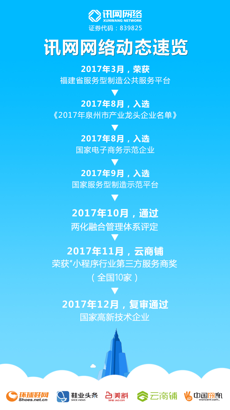 知識呈現(xiàn)品牌力,科技彰顯新實力,訊網(wǎng)網(wǎng)絡近年來在技術創(chuàng)新和產業(yè)服務方面取得的突出成就,也得到了諸多認可。回首2017年,公司連續(xù)獲得國家電子商務示范企業(yè)和國家服務型制造示范平臺稱號。此次又獲得國家級高新技術企業(yè)的評定,是政府各職能部門對訊網(wǎng)網(wǎng)絡在科技研發(fā)工作中所取得成績的肯定與鼓勵,同時也是對訊網(wǎng)網(wǎng)絡提出了更高的創(chuàng)新要求。
