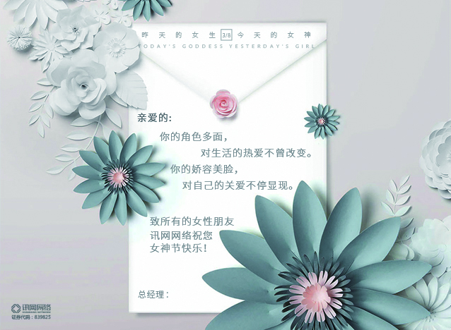 今天是三八世界女神節,在這樣特殊的節日里,訊網網絡為各位女神們,送上了非常有愛的女神專屬禮物。