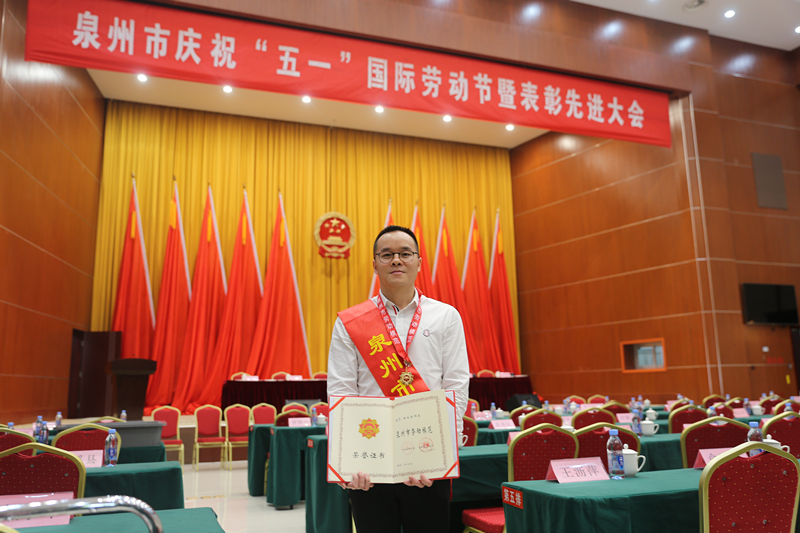 25日上午,泉州市委、市政府隆重舉行慶祝“五一”國際勞動節暨表彰先進大會,來自全市各地、各行業的112名勞動模范、90名先進工作者受到表彰。訊網網絡總經理林文佳榮獲“泉州市勞動模范”稱號。