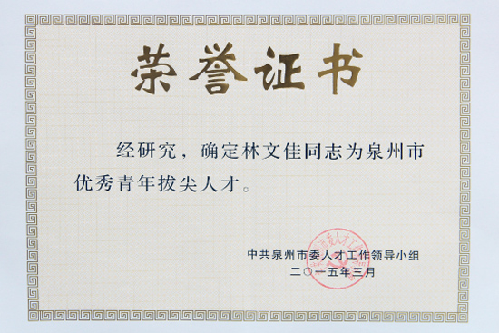 熱烈祝賀訊網(wǎng)網(wǎng)絡總經(jīng)理榮獲泉州市十大優(yōu)秀青年拔尖人才