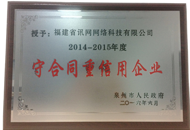 近日,泉州市人民政府公布2014-2015年度 “守合同重信用企業(yè)”(以下簡稱“守重企業(yè)”)名單,福建訊網(wǎng)網(wǎng)絡科技股份有限公司位列其中,這是對訊網(wǎng)網(wǎng)絡誠信經(jīng)營行為的肯定。